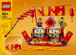Serkentse a 10 éves és idősebb gyerekek kreativitását a LEGO Fesztivál Naptárral (40678), amely két egyedi model építését teszi lehetővé. A forgatható szerkezetnek köszönhetően a gyerekek könnyedén kiválaszthatják, hogy melyik dátum legyen látható. Az Holdújév ünnepmodell két minifigurát és lámpásokat tartalmaz, míg a Sárkányhajó Fesztivál modell egy gyönyörű sárkány feje és farka, valamint vizet ábrázoló elemek találhatók benne. További részek közé tartoznak a tűzijátékok, piros borítékok és a szerencse szimbóluma.
