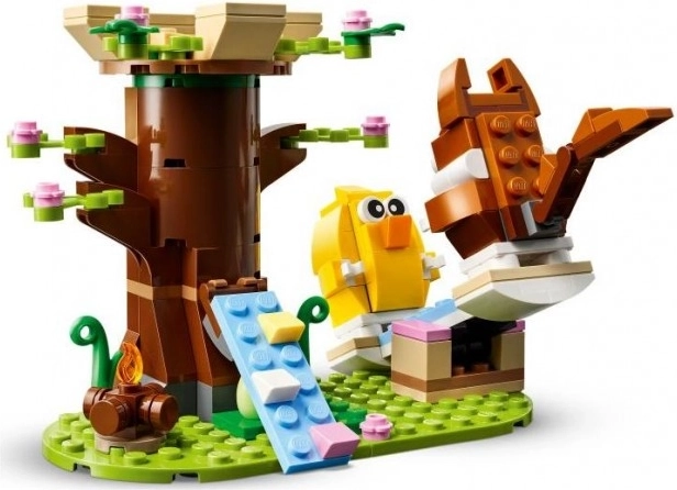 A LEGO Tavaszi állatjátszótér tökéletes ajándék 8 éves kortól és idősebb gyerekeknek. A készletben van méhecske, madarak, lombház, tűzrakóhely, hinta és két húsvéti tojás. A gyerekek feljuttathatják az állatokat a rámpán a lombházba, ücsöröghetnek a tűznél vagy hintázhatnak.