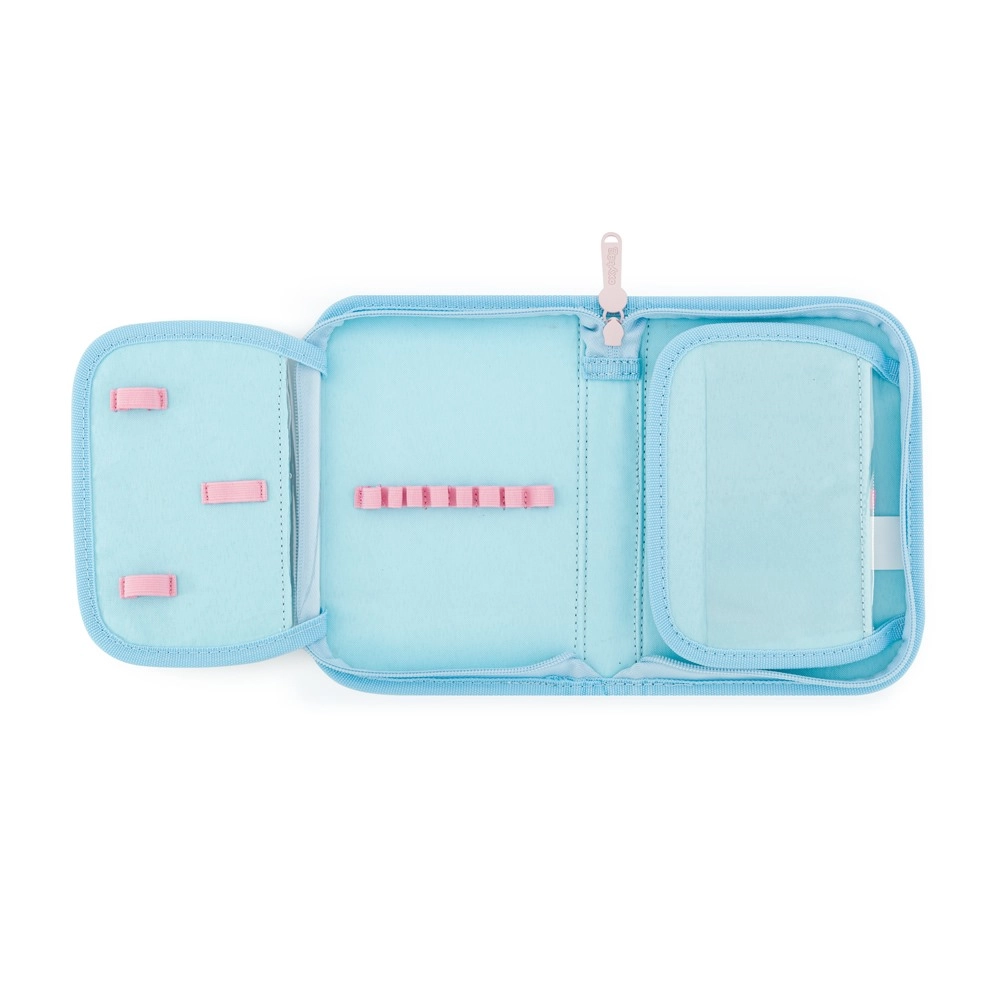 Stílusos, egyszintes iskolai tolltartó 2 füllel kolibri mintával, amely áttekinthető tárolást kínál az íróeszközöknek. Tartalmaz 25 gumis hurkot ceruzák és tollak számára, valamint átlátszó fóliát az órarendhez a könnyű rendszerezés érdekében. Könnyű és praktikus, minden iskolai hátizsákba illik.