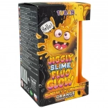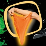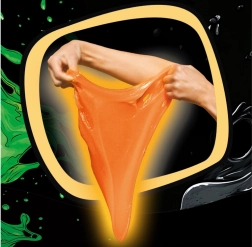 Ez az egyedülálló Jiggly Slime speciális receptúrájának köszönhetően kellemesen vibrál és remeg érintésre, miközben könnyedén nyúlik minden irányba. Ideális hosszú gyúráshoz, kézről kézre adogatáshoz, nyújtáshoz és buborékfújáshoz. A fluoreszkáló pigment telt narancssárga színt és glow-in-the-dark hatást kölcsönöz neki még szórakoztatóbb játékhoz.