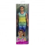 Ken egy ombre topot visel, amely kék és zöld árnyalatokban átmenetes, tökéletesen illeszkedve a személyiségéhez.