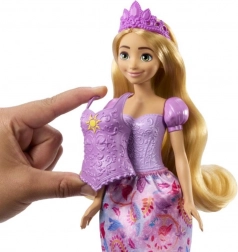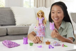 Baba Disney Hercegnő Történetek Aranyhaj 2 az 1-ben a Disney Aranyhaj és a nagy gubanc című film népszerű pillanataiból merít ihletet. Ez a hajlítható baba két különböző megjelenéssel bír a könnyen cserélhető fűzőknek és szoknyáknak köszönhetően, melyek piknik vagy művészeti tevékenységek történeteinek megalkotását teszik lehetővé.