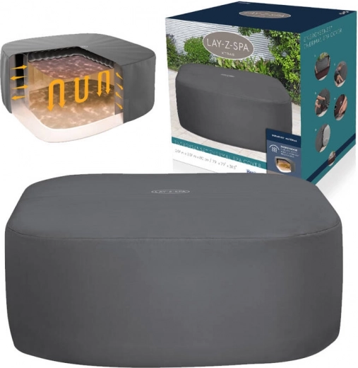 A négyzet alakú pezsgőfürdők (2,01 m x 2,01 m x 80 cm) számára készült termikus takaró ideális megoldást nyújt a pezsgőfürdő hatékonyságának és védelmének növelésére. A kettős rétegű hőszigetelés révén jelentős energia megtakarítást érhet el.
