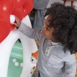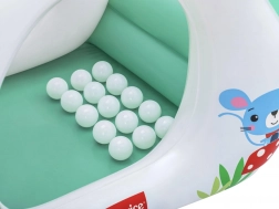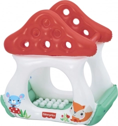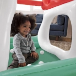 A házikó vidám színvilággal büszkélkedhet zöld, fehér és piros árnyalatokban. A gombaszerű tető nemcsak védelemként, hanem a golyók válogatásához is szolgál, ami támogatja a kéz-szem koordinációt és a kézügyességi alapok megtanulását. A csomagolás része 15 könnyű golyó, amelyek izgalmasabbá teszik a játékot.