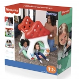 A házikó vidám színvilággal és gombamintával rendelkezik, amely ösztönzi a gyerekek kreativitását.