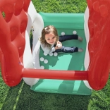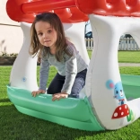 A Gombasátor felfújható házikó tartós PVC-ből készült, amely biztosítja a stabilitást és a biztonságot. A puha felfújt falak védik a gyermeket a sérülésektől, és a széles alap megakadályozza a házikó felborulását. Kompakt méreteinek köszönhetően könnyen elhelyezhető otthon vagy szabadtéren, ami ideális játszóhelyet teremt.