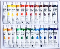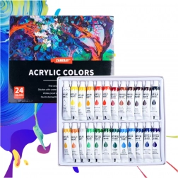 Teljes akrilfesték-készlet hobbira és műterembe: 24 intenzív árnyalat praktikus 12 ml-es tubusokban. A festékek gazdagon pigmentáltak, gyorsan száradnak, és kiválóan tapadnak különböző felületeken – a papírtól és a vászontól a fán, üvegen és fémen át. Ideális kezdőknek és profiknak, a tubusok csavaros kupakja megakadályozza a kiszáradást.