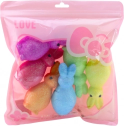 Ez a dekoratív szett hat bájos nyuszit tartalmaz sárga, kék, rózsaszín, zöld, narancssárga és lila színben. A finom csillámokkal díszített felület magára vonja a tekintetet, és fokozza a tavaszi és húsvéti hangulatot bármely enteriőrben. A könnyű hungarocellnek köszönhetően a díszek könnyen mozgathatók és a gyerekek számára is biztonságosak.