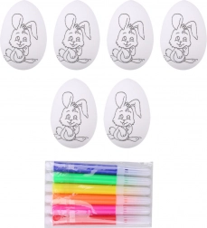 Alkoss egyedi húsvéti dekorációt könnyű és tartós polisztirol tojásokkal, bájos nyuszis motívummal. A sima felületnek köszönhetően a tojások könnyen festhetők és díszíthetők, a mellékelt, különböző színű filctollakkal pedig azonnal elkezdheted a munkát. A készlet remek családi alkotásokhoz, óvodai és iskolai foglalkozásokhoz, valamint eredeti húsvéti ajándéknak.