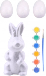 Húsvéti készlet polisztirol tojásokkal és nyuszival ideális választás kreatív festéshez gyermekekkel. Tartalmaz 3 polisztirol tojást és egy nyuszifigurát, valamint 6 festékszínt, amelyek korlátlan alkotást tesznek lehetővé.