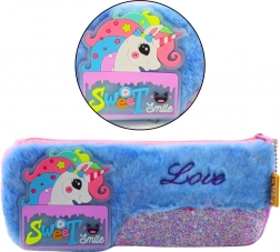 Ez a varázslatos plüss tolltartó kék színben, egyszarvú mintával és csillogó elemekkel nagyszerű választás minden iskolai kellékhez. Puhat és kellemes tapintású, elegendő helyet kínál a tollak, ceruzák és más szükséges kiegészítők tárolására.