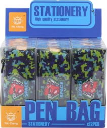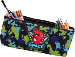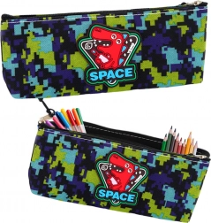 Kozmetikai táska dinoszauruszokkal és pixelekkel ideális gyerekeknek, akik szeretik az űrt és a dinoszauruszokat. Ez a táska egyedi dizájnt kínál élénk színekben kék, zöld és fekete kombinációjával, tökéletes az íróeszközeid rendezéséhez.