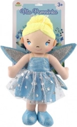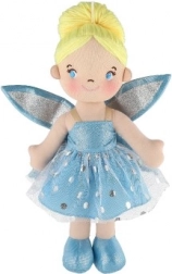 A baba kék ruhában és csillogó szárnyakkal van felöltözve, ami valódi mesebeli megjelenést kölcsönöz neki.