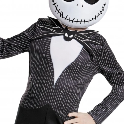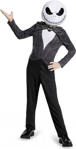 Ez a gyerek Jack Skellington jelmez a Halloween Város királyává változtatja a kis rajongót. A minőségi fekete, fehér csíkos overál Jack elegáns öltönyét idézi, az ikonikus denevér-csokornyakkendő karaktert ad, a varrott mosolyú maszk pedig teljessé teszi a megjelenést.