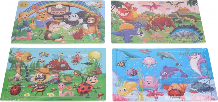 Gyerek puzzle 30 darabbal, méret 22,5x14,5 cm és 12 különböző motívummal. Kiváló a motorika és logika fejlesztésére.