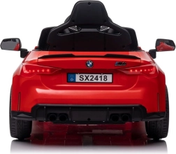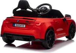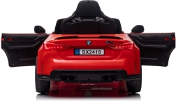 Mindkét ajtó nyitható, így a beszállás a gyerekeknek egyszerű és szórakoztató. A karosszéria sportos vonalai a legendás BMW M4-re utalnak, és kiemelik a kisautó élethű megjelenését.