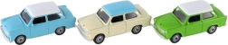 fém Trabant modell 1:60 a Wellytől, 7 cm, szabadonfutó, vegyes színek