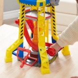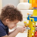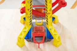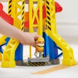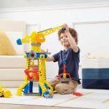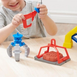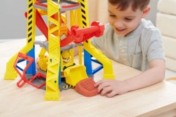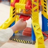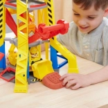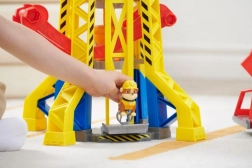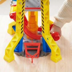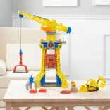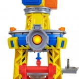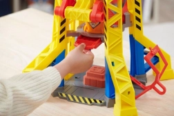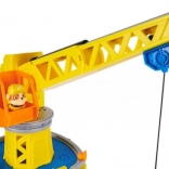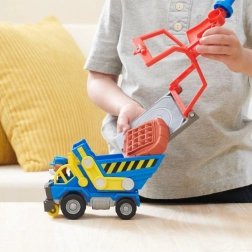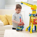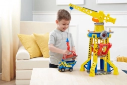 Helyezze Rubble-t a liftbe, és emelje fel a darutorony tetejére, az irányítófülkébe. Használja a darut a blokkok felemelésére és áthelyezésére a megfelelő helyre. A további meglepetésekért nyomja meg a nagy piros gombot a tornyon a fények és a sorozatból ismert hangok aktiválásához. További szórakozásért keresse meg a további építőkamionokat és figurákat a Rubble & Crew sorozatból.