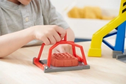 Lehetővé teszi a gyerekek számára, hogy saját építőblokkokat hozzanak létre kinetikus homokkal. A gyerekek a piros karral működtetett préssel készíthetik és alakíthatják saját szerkezeteiket.