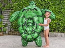 A felfújható teknős alakú vízi matrac tartós PVC anyagból készült, amely nemcsak tartósságot, hanem biztonságot is nyújt a használat során. A matrac fogantyúkkal van ellátva a kényelmes és biztonságos megfogás érdekében. Maximális terhelhetősége 45 kg, ami alkalmassá teszi 3 éves kortól gyermekek számára.