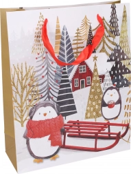 Válasszon a 4 különböző karácsonyi minta közül, amelyek kiemelik az ünnepi hangulatot. A táska időt és idegeket spórol – nincs papírvágás, nincs ragasztás. Csak helyezze bele az ajándékot, esetleg egészítse ki selyempapírral, és már kész is.