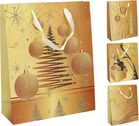 Válasszon 4 különböző karácsonyi motívum közül, amelyek kiemelik az ünnepi hangulatot. A táska minőségi anyagból készült, erős fülekkel, így megbízhatóan megtartja a tartalmát, és egyben reprezentatívan mutat.