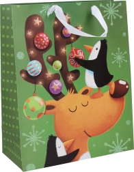 Kiváló karácsonyi ajándéktáska közepes méretben, 32x26x12 cm méretű, kényelmesen becsomagolhatja ajándékait. Válasszon 4 különböző motívumból az egyedi megjelenésért.