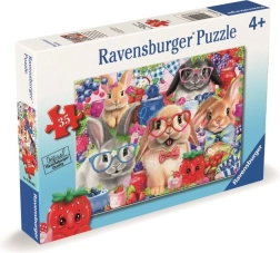 Fedezd fel az állatok varázslatos világát a RAVENSBURGER Nyuszik és erdei gyümölcsök kirakóval. A 35 masszív darabnak köszönhetően a kirakó nagyszerű választás azoknak a gyerekeknek, akik szeretnék fejleszteni finommotorikájukat, türelmüket és vizuális észlelésüket. Kirakás után kb. 26 × 18 cm-es kép készül.