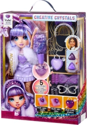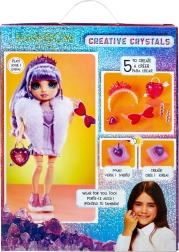 A Rainbow High Creative Crystals kollekció stílusos Violet Willow babája a divattrendeket ötvözi a kreativitással. A csomag mindent tartalmaz, amire szükséged van ragyogó kristálykiegészítők készítéséhez – egyszerűen öntsd a gyantát a formákba, és alkoss egyedi díszeket a babának, valamint egy gyűrűt magadnak. A mozgatható ízületeknek és a fésülhető hajnak köszönhetően rengeteg szórakozás vár rád pózolás és styling közben.