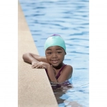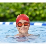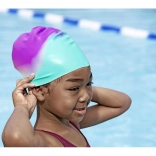 Az ergonomikus szabás igazodik a fejhez, védelmet nyújt a fröccsenő vízzel szemben, segít a haj és a fül zárásában, és egyúttal csökkenti az ellenállást a gördülékenyebb úszásért. A többszínű megjelenés növeli a láthatóságot a medencében, és a gyerekek imádni fogják.