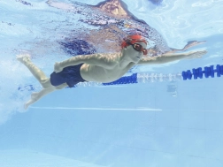 A feltűnő kétszínű kivitel növeli a gyermek láthatóságát a medencében, és stílust ad minden edzéshez.