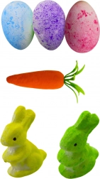 Húsvéti dekorációk a kosárban tökéletesek tavaszi elrendezésekhez. A készlet változatos, könnyű és tartós polisztirolból készült dekorációkat tartalmaz, melyek gyönyörűen kiegészítik bármelyik belső teret. Pasztell színei kiemelik az ünnepek örömteli hangulatát, és a gondos részletek elegáns megjelenést biztosítanak.