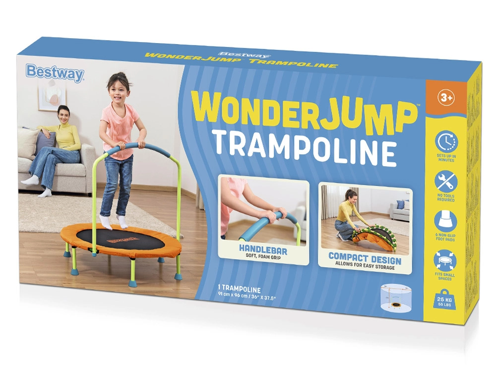 Mozgassa meg a gyerekeket játékos formában – a BESTWAY WonderJump trambulin támogatja a koordinációs képességeket, az egyensúlyt és az általános fizikai kondíciót. Beltéri és kültéri használatra egyaránt ideális, tartós, porszórt bevonatú vázzal és vidám, gyerekbarát színezéssel.
