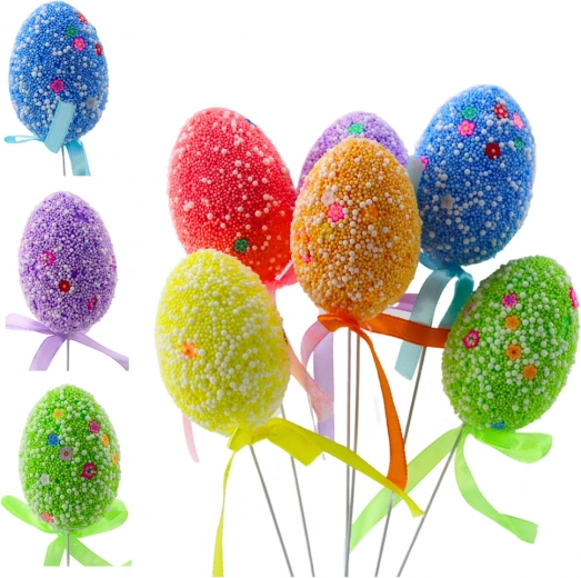 Minden tojás díszített habgyöngyökkel és finom mintákkal az egyedi megjelenés érdekében.