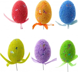 Dobd fel a tavaszi dekorációt elegáns, hat darabos beszúrható húsvéti tojáskészlettel. Minden tojást apró gyöngyök és finom „hangjegy” minták díszítenek, hozzájuk illő színű masnival kiegészítve. A könnyű hungarocell dekorációnak, a pasztell színeknek és a rugalmas drótnak köszönhetően az elrendezés egyszerű és látványos – ideális csokrokba, balkonládákba, koszorúkba és az ünnepi asztalra is.