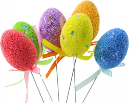 A rugalmas drótnak köszönhetően a tojások könnyen elhelyezhetők virágkompozíciókban, cserepekben, fonott kosarakban vagy húsvéti koszorúkban. A könnyű hungarocell anyag jól tartja a formát, és praktikus a többszöri használathoz. A készlet 6 különböző színű tojást tartalmaz, így gyorsan megalkothatod a harmonikus és figyelemfelkeltő dekorációt.