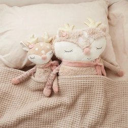 Ella őzike puha, kellemes tapintású anyagból készült, amely már az első napoktól biztonságérzetet és kényelmet nyújt a babáknak.