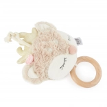 A zsinórok segítségével a játék gyorsan rögzíthető kiságyra, babakocsira vagy autósülésre. A fa gyűrű a zenedoboz kényelmes felhúzására szolgál.