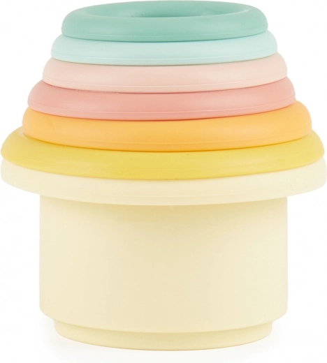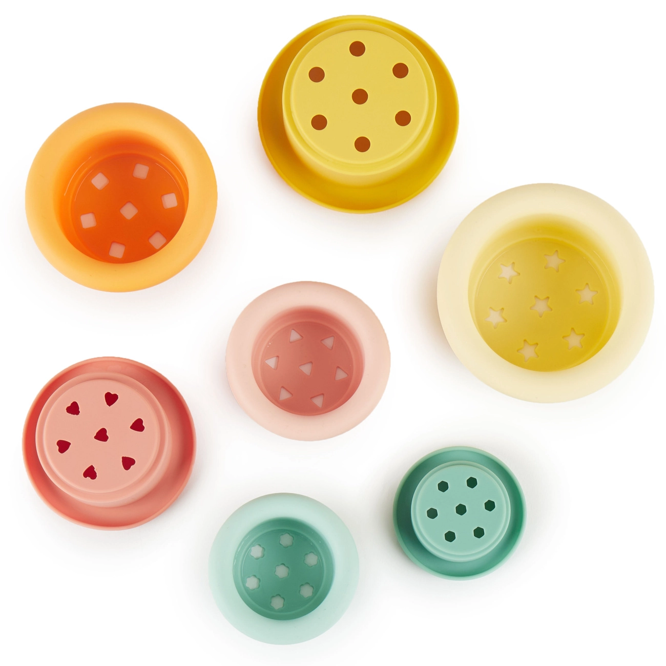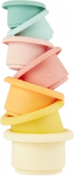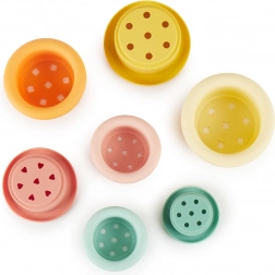 Hét darabból álló, 100% szilikon rakosgatható pohárkészlet. Ez a játék a gyermekek koordinációját és finommotorikáját fejleszti. Tartós és biztonságos szilikonból készült, így beltéri és kültéri használatra egyaránt ideális. Ráadásul a karbantartása rendkívül egyszerű – elég vízzel és enyhe szappannal elmosni.