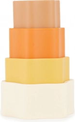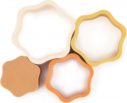 Ez a 4 részes, virág alakú rakosgató szett 100% élelmiszeripari szilikonból készült, amely tapintásra puha, gyermekbarát és rendkívül tartós. Az elemek egymásra helyezése és válogatása fejleszti a szem–kéz koordinációt, a finommotorikát és a logikus gondolkodást.