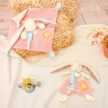 A „Kertem” kollekció Ciboulette nyuszija tökéletes társ a gyermekének. Prémium anyagokból készült, és megfelel a CE európai szabványoknak, ami magas minőséget és biztonságot garantál. A beépített cumitartónak és a fülek belső oldalán található puha textúrának köszönhetően a játék ideális a szorongatáshoz és a baba megnyugtatásához.