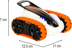 A REVOLT BIOTRAX egy mini terepes lánctalpas modell, amely különböző felületeken is megállja a helyét – a szőnyegektől a gyepig. A masszív műanyag karosszéria és a gumiláncok kiváló tapadást és tartósságot biztosítanak, míg a LED effektek kiemelnek minden trükköt és az esti menetet is.