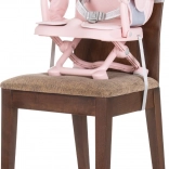 Két rögzítőpánt stabilan a konyhai széken tartja a boostert, miközben a biztonsági övek étkezés közben rögzítik a gyermeket.