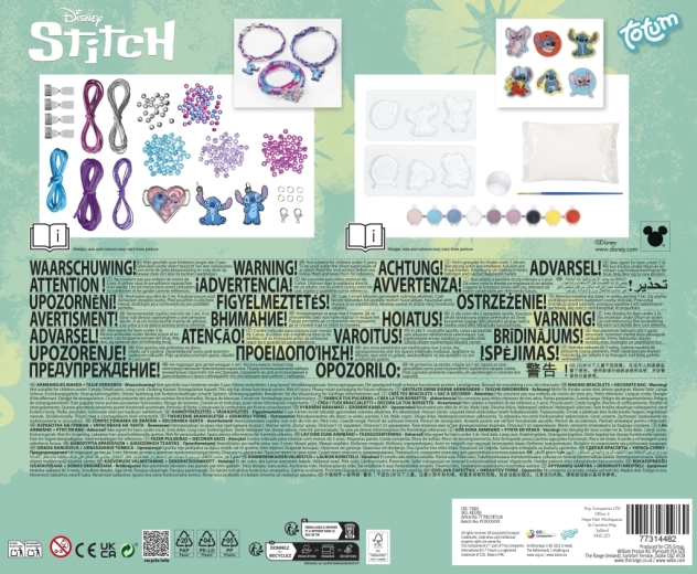 Fedezd fel a szórakoztató kreativitást a 2 az 1-ben DISNEY STITCH készlettel, amely ötvözi az ékszerkészítést és a gipszfigurák festését. Készíts három egyedi karkötőt színes zsinórokkal, üveggyöngyökkel és gumiból készült STITCH és ANGEL medálokkal, majd önts és színezz ki saját figurákat. Ideális gyerekeknek, akik szeretik a kézműveskedést, a színeket és az eredeti kiegészítőket.