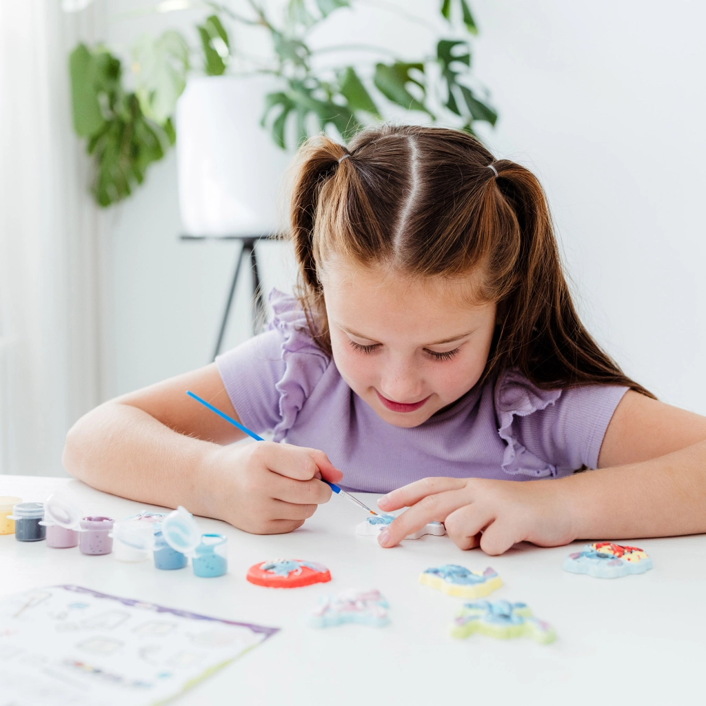 Készíts gipszfigurákat formák segítségével, majd díszítsd őket festékekkel és ecsettel. Remek tevékenység a kreativitás fejlesztésére.