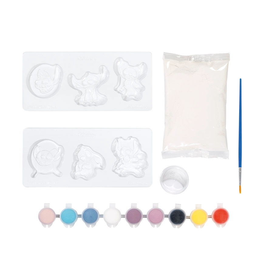 A készlet második része minden kis művészt megörvendeztet: gipsz és formák segítségével aranyos STITCH és ANGEL figurákat készíthettek, amelyeket ezután a mellékelt festékekkel kifesthettek. A finom ecset és a praktikus mérőpohár a kezdőknek is megkönnyíti a munkát.