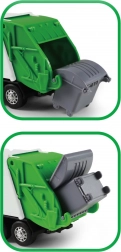 Ez a részletesen kidolgozott szemetesautó modell ötvözi a fém kivitel tartósságát a műanyag plató könnyedségével, ami tökéletes játékot tesz lehetővé gyerekek számára. Az autó lehajtható hátsó ajtókkal rendelkezik, és nyitható hulladékgyűjtőt hoz, ami lehetővé teszi a valósághű játékot.