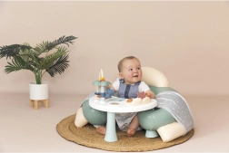 Kényelmes és biztonságos interaktív babafotel 6 hónapos kortól, felfújható üléssel, fejtámasszal és kartámasszal. Tartozéka egy levehető játéktálca sokféle tevékenységgel a finommotorika, az érzékelés és a koordináció fejlesztésére. Könnyű, kompakt kialakítása megkönnyíti a hordozást, a könnyű karbantartás pedig nap mint nap örömet okoz.