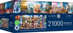 Alkossa meg otthon egyedülálló panorámáját – az óriási, összesen 21 000 darabos puzzle a Föld krónikáját ábrázolja születésétől a jövő vízióiig. A 14 kép mindegyike (egyenként 1500 darab) külön csomagban érkezik, így ott kezdheti, ahol szeretné, majd az UFT technológiának köszönhetően fokozatosan egyetlen grandiózus kompozícióvá kapcsolhatja őket.