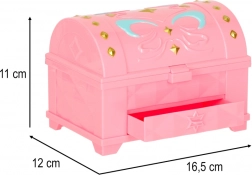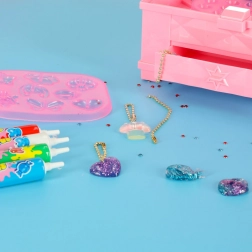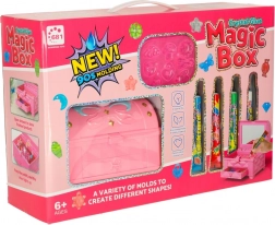 Varázslatos Doboza egy csodálatos kreatív készlet, amely lehetővé teszi a gyerekeknek, hogy személyes ékszereket készítsenek színes ragasztó segítségével. A készlet négy tubus ragasztót tartalmaz a következő színekben: piros, zöld, kék és fehér, valamint négy különböző formát. Továbbá dekorációs elemek, mint a csillámok és apró kristályok, személyre szabják az ékszereket saját fantáziájuk szerint. A munkához rendelkezésre áll egy reszelő és csipesz.
